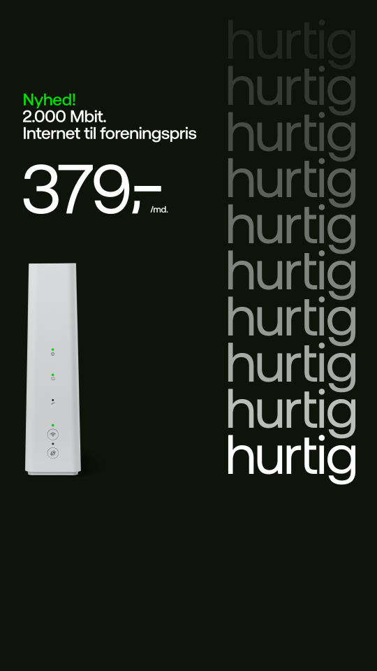 Når du har tv fra din forening, kan du også få Foreningsbredbånd. Det betyder, at du har adgang til særlige bredbåndshastigheder og -priser.